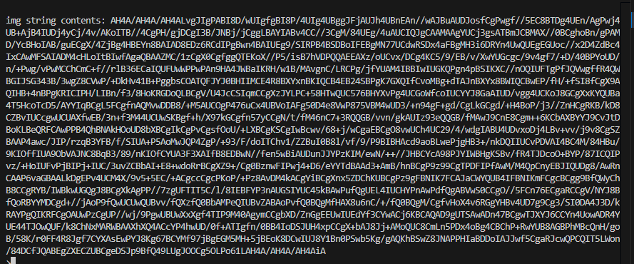 OK, that's real, genuine progress. We can encode images and display them, which we need for the perks screen. They are pretty big though, so I think next order of business is going to be keeping those strings in text files and loading them in when we need to. Back to the docs... Although I might leave it there tonight, my back hurts. No wonder Zuck had to be 19 to do this live.